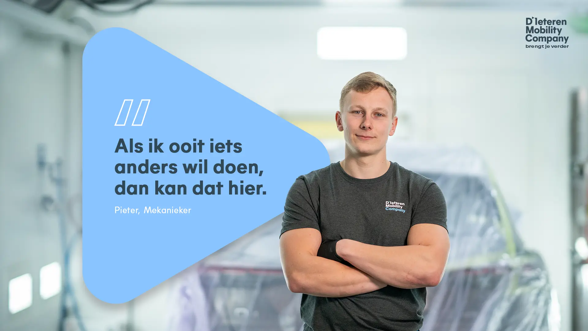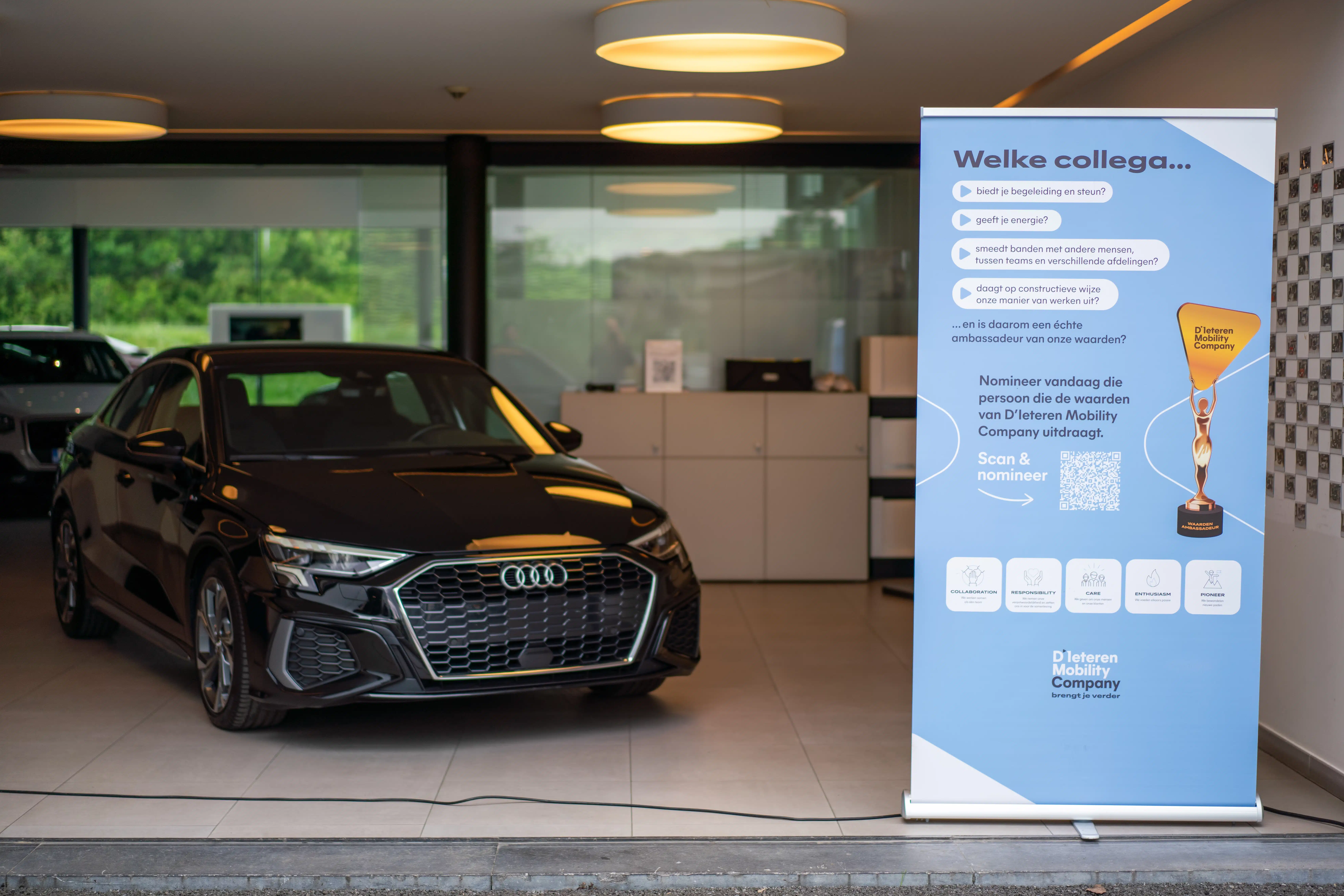 Op basis van ons onderzoek kozen we bewust niet voor een nieuwe slogan, maar benutten we de kracht van de bestaande corporate belofte: ‘D’Ieteren Mobility Company brengt je verder’ en gaven we deze zin een concrete, interne lading.