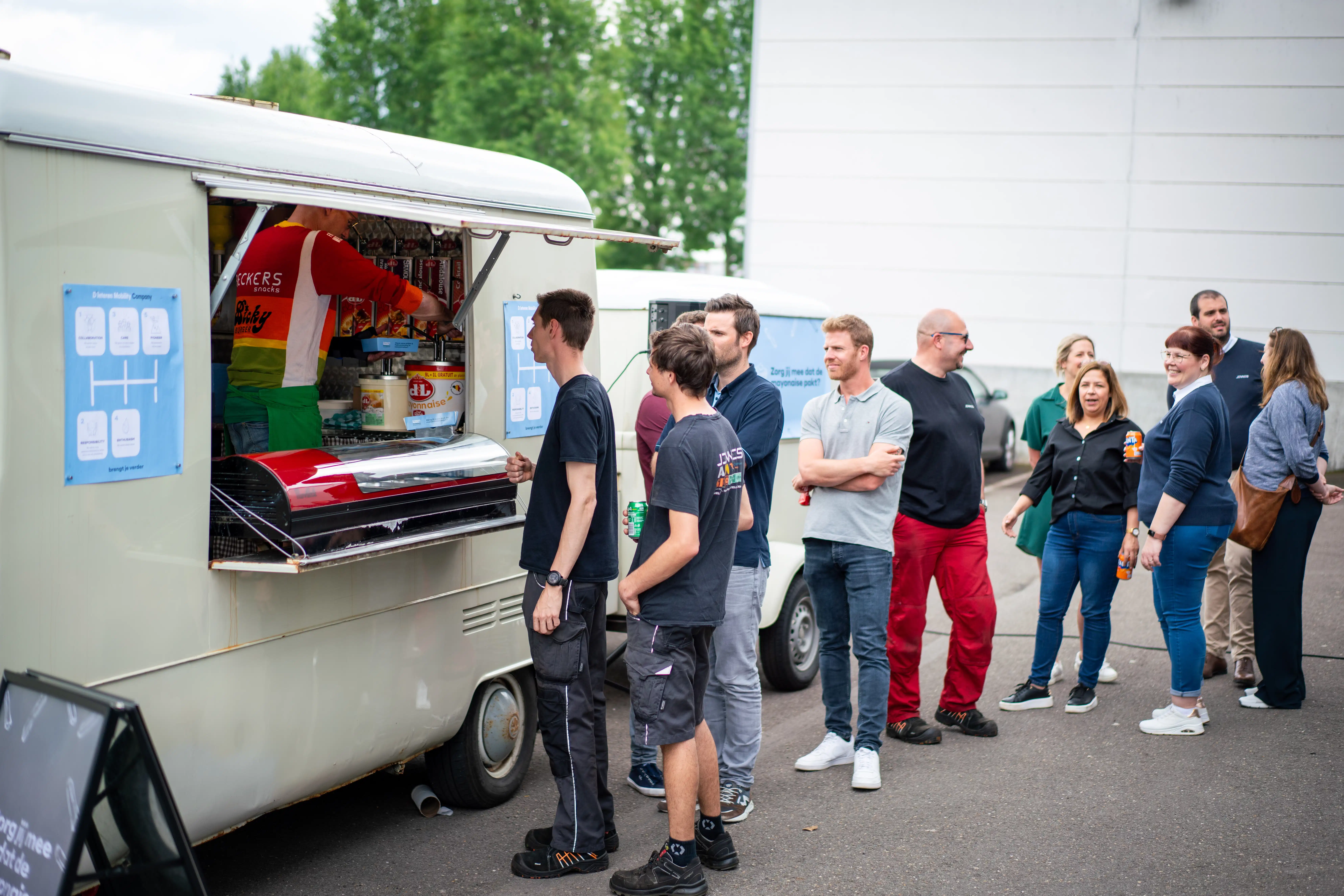 Een belangrijk onderdeel van de interne campagne was de roadshow, waarbij we met een unieke Volkswagen (uiteraard een VW!) oldtimer-foodtruck langs de verschillende concessies trokken.